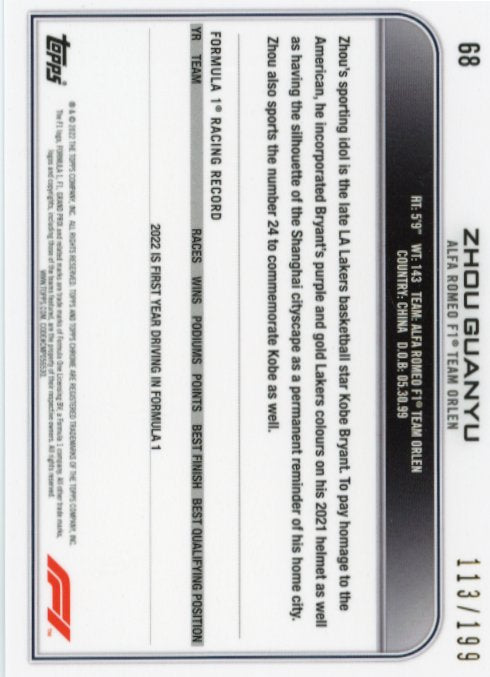 2022 Topps Zhou Guanyu #69 - Green Cracked Ice #/199 Team Orlen