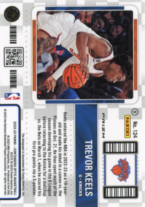 2022/23 Panini Contenders Optic Trevor Keels RC #124 - Silver Autograph Knicks