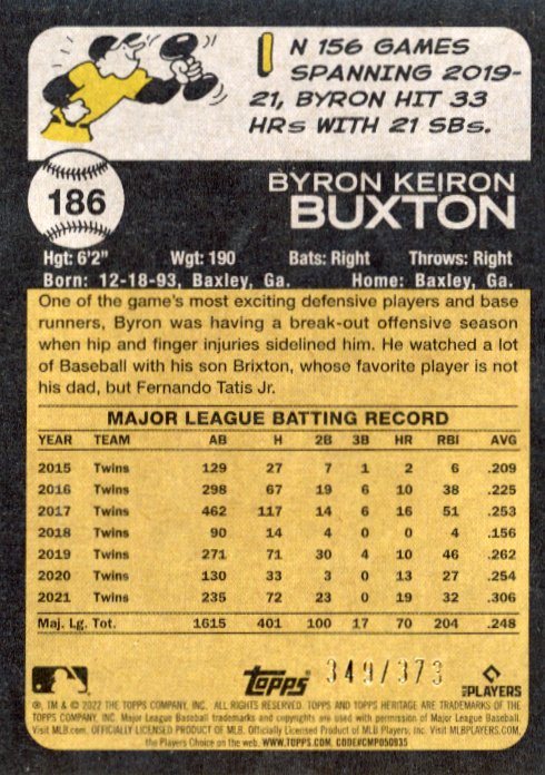 2022 Topps Heritage Byron Buxton #186 - #/373 Twins