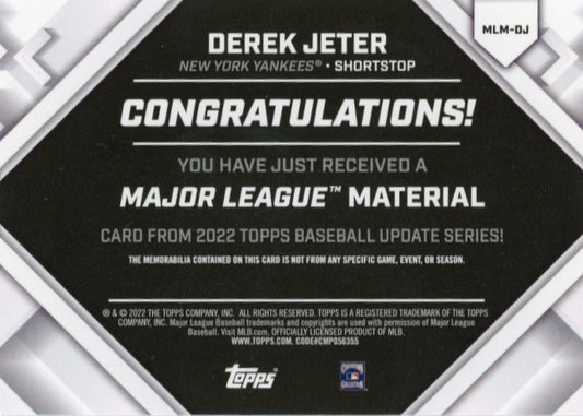 2022 Topps Update Derek Jeter #MLM-DJ - Major League Material Relic Yankees