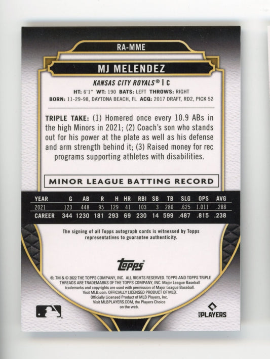 2022 Topps Triple Threads MJ Melendez RC #RA-MME - Autograph #/99 Royals