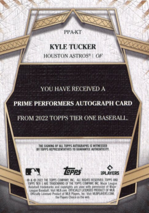 2022 Topps Tier One Kyle Tucker #PPA-KT - Autograph #/299 Astros