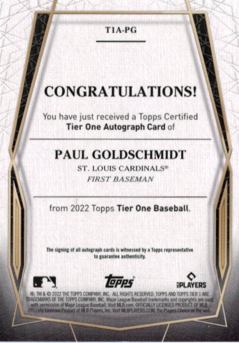 2022 Topps Tier One Paul Goldschmidt #T1A-PG - Autograph #/25 Cardinals