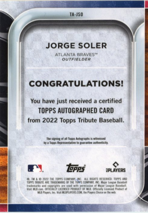 2022 Topps Tribute Jorge Soler #TA-JSO - Autograph Blue #/150 Braves