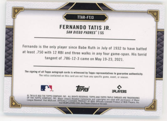 2022 Topps Triple Threads Fernando Tatis Jr. "Torrid Stats" #TTAR-FTJ3 - Autograph Relic Orange #/18 Padres