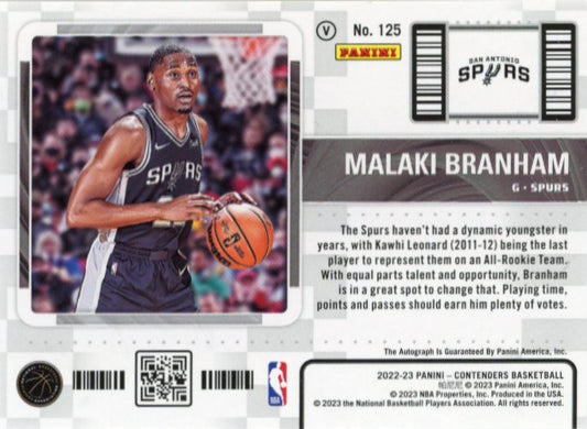 2022/23 Panini Contenders Malaki Branham The Finals Ticket RC #125 - #/49 Autograph Spurs