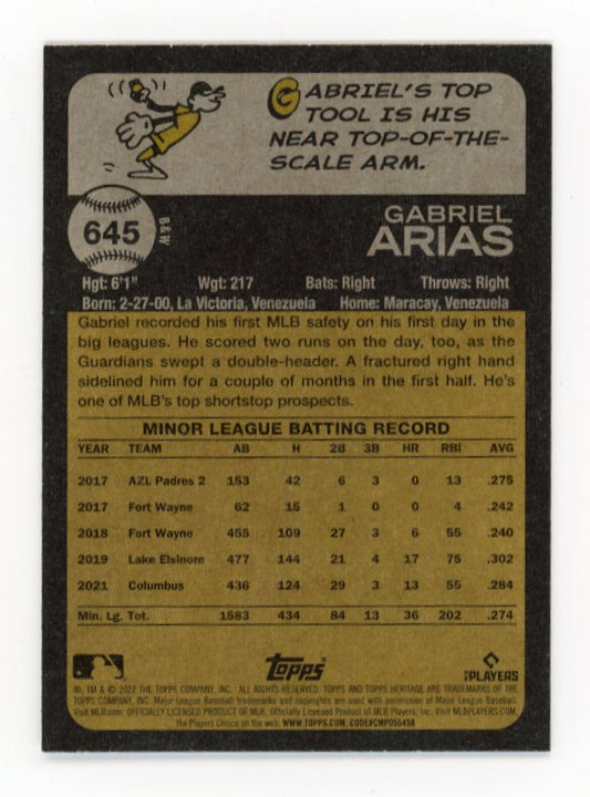 2022 Topps Heritage Gabriel Arias RC #645 Guardians