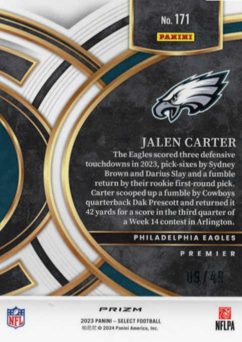 2023 Panini Select Jalen Carter Rookie RC #171 - Green #/49 Eagles