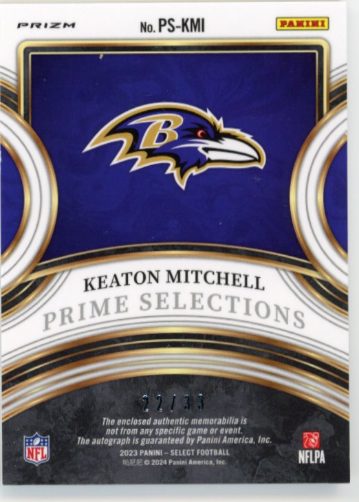 2023 Panini Select Keaton Mitchell Rookie RC #PS-KMI - FOTL Orangle Pulsar Patch Autograph #/33 Ravens