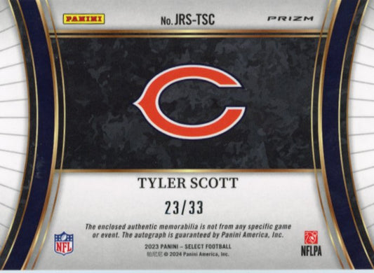 2023 Panini Select Tyler Scott Rookie RC #JRS-TRC - FOTL Orange Orange Pulsar Patch Autograoh #/33 Bears