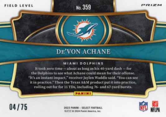 2023 Panini Select De'Von Achane Rookie RC #359 - RWB Shimmer #/75 Dolphins