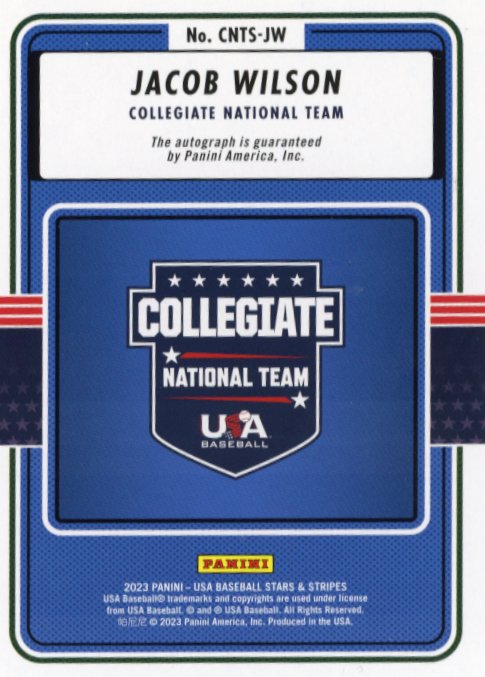 2023 Panini Stars & Stripes Jacob Wilson #CNTS-JW - Autograph USA