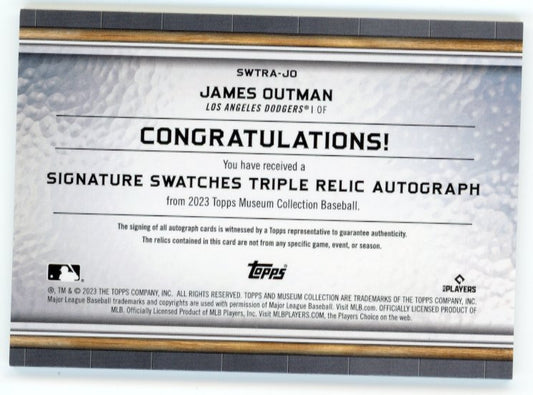 2023 Topps Museum Collection James Outman Signature Swatches RC #SWTRA-JO - Triple Relic Autograph #/199 Dodgers