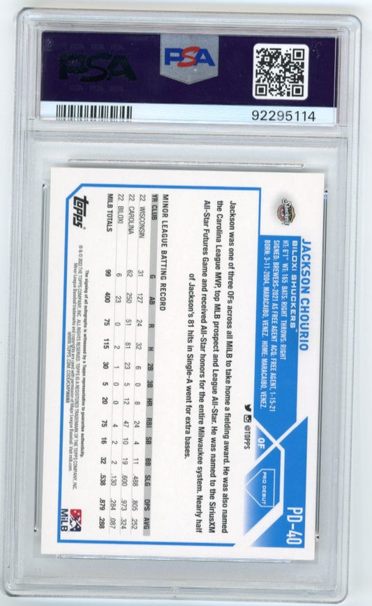 2023 Topps Pro Debut Jackson Chourio #PD-40 - Autograph PSA 10 Brewers