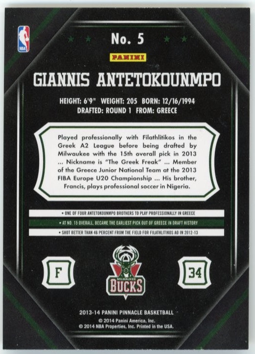 2023/14 Panini Pinnacle Giannis Antetokounmpo Rookie RC #5 - Bucks