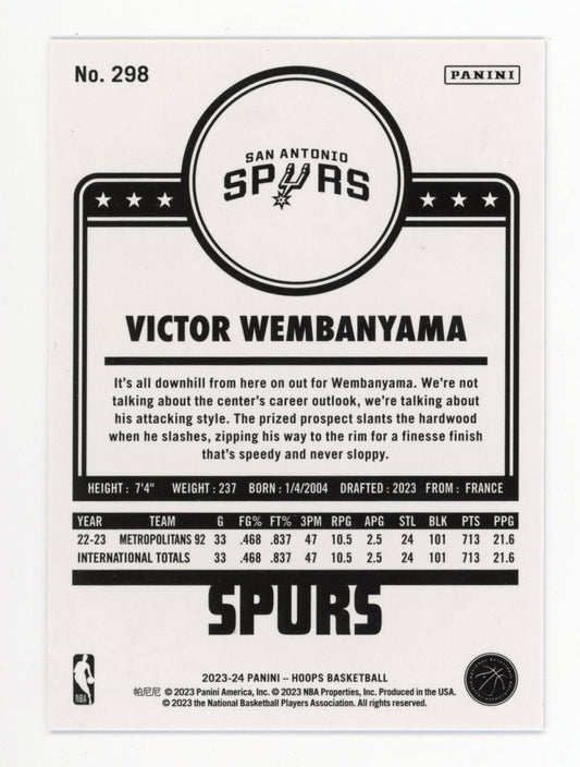 2023-24 Panini NBA Hoops Victor Wembanyana Rookie #298 - Purple Spurs