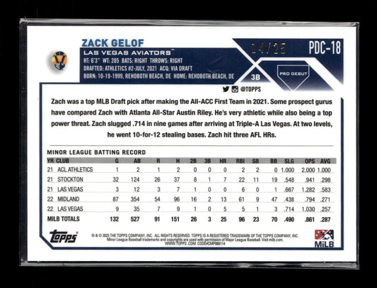 2023 Topps Pro Debut Zack Gelof #PDC-18 Chrome Autographs Orange Lava Refractor #/25 Las Vegas Aviators