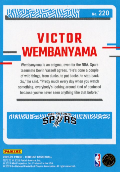 2023/24 Panini Donruss Victor Wembanyama Rated Rookie RC #220 - Spurs