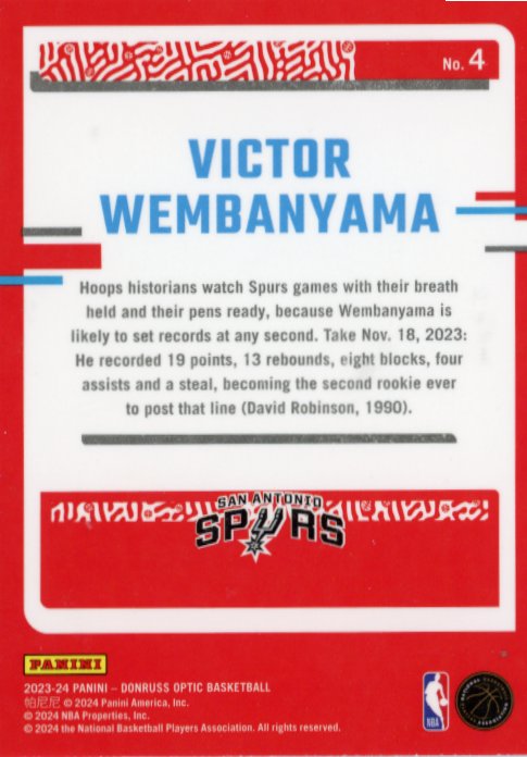 2023/24 Panini Donruss Optic Victor Wembayama The Rookies RC #4 - Spurs