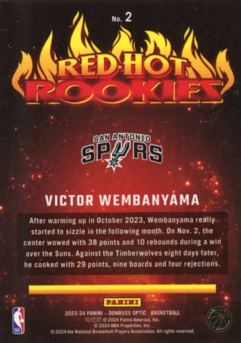 2023/24 Panini Donruss Optic Victor Wembanyama Red Hot Rookies #2 - Spurs