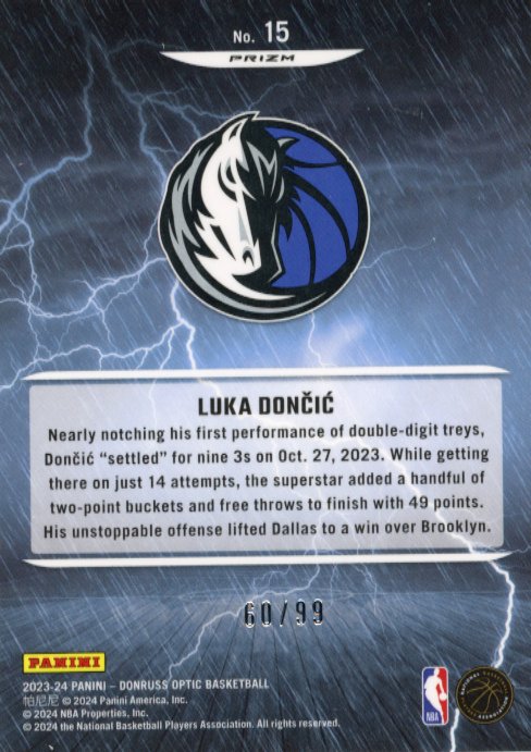 2023/24 Panini Donruss Optic Luka Doncic Raining 3s #15 - #/99 Red Mavericks