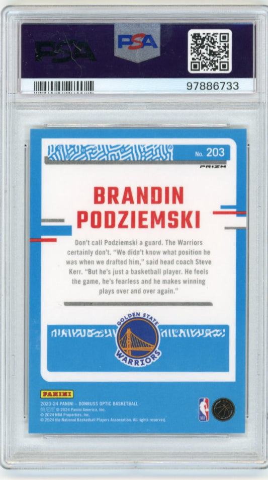 2023/24 Panini Optic Brandin Podziemski Rated Rookie RC #203 - Holo PSA 10 Warriors