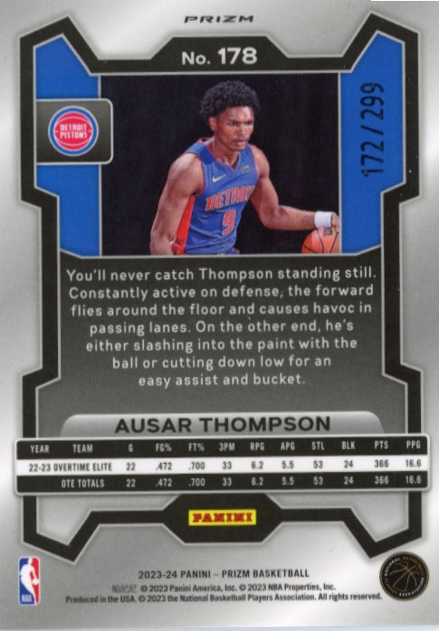 2023/24 Panini Prizm Ausar Thompson RC #178 - #/299 Red Seismic Pistons