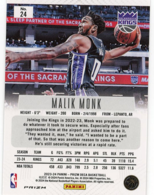 2023/24 Panini Prizm Malik Monk #24 - Orange Prizm #/ 49 Kings