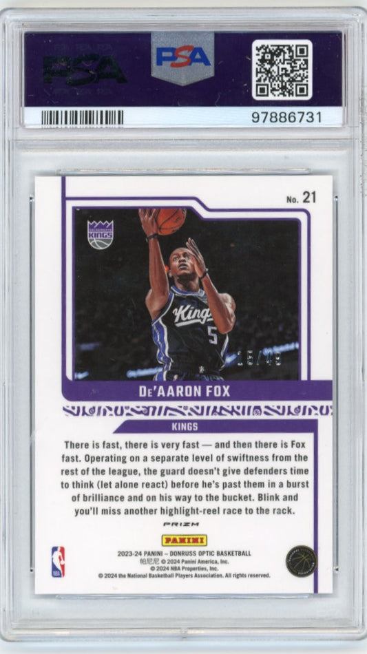 2023/24 Panini Optic De'Aaron Fox Elite Dominators #21 - Blue PSA 10 Kings
