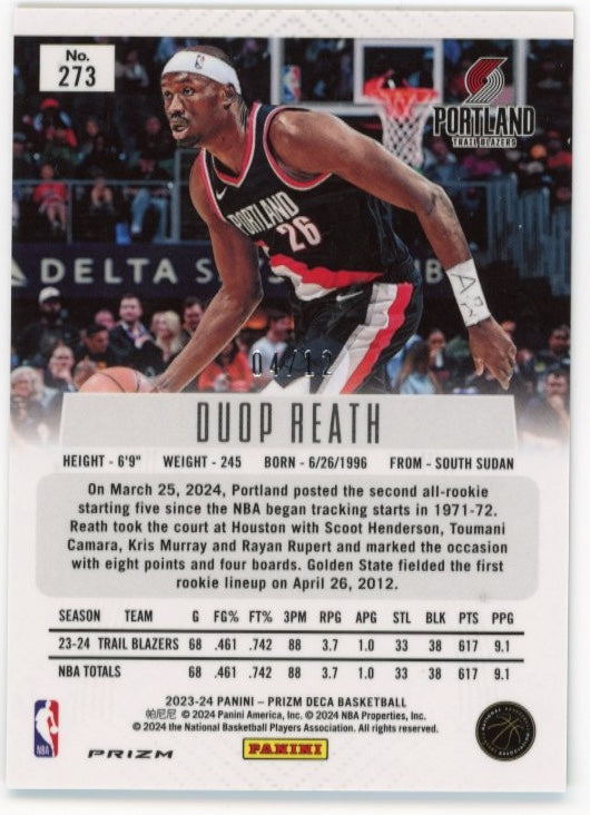 2023/24 Panini Prizm Deca Duop Reath RC #273 - Green Shimmer #/12 Trail Blazers