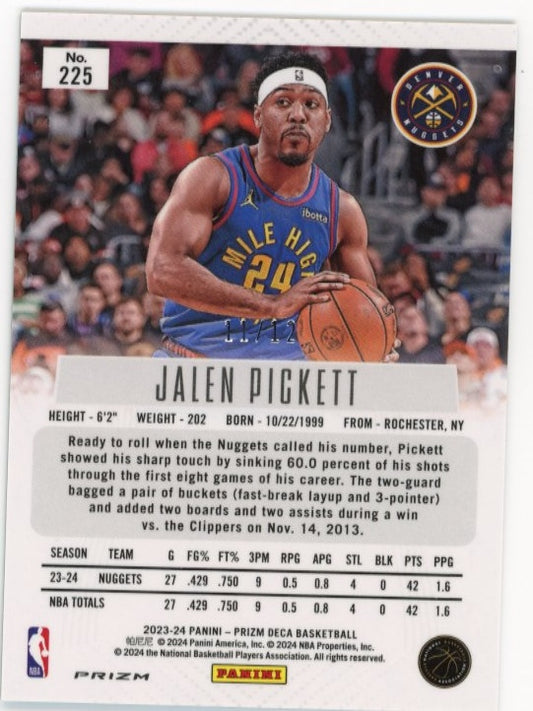 2023/24 Panini Prizm Deca Jalen Pickett RC #225 - #/12 Green Shimmer Nuggets
