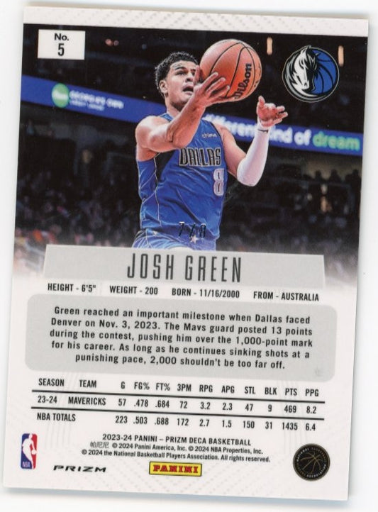 2023/24 Panini Prizm Deca Josh Green #5 - Black Gold Shimmer #/8 Mavericks