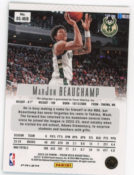 2023/24 Panini Prizm Deca Marjon Beauchamp #DS-MJB - Green Shimmer Autograph #/25 Bucks