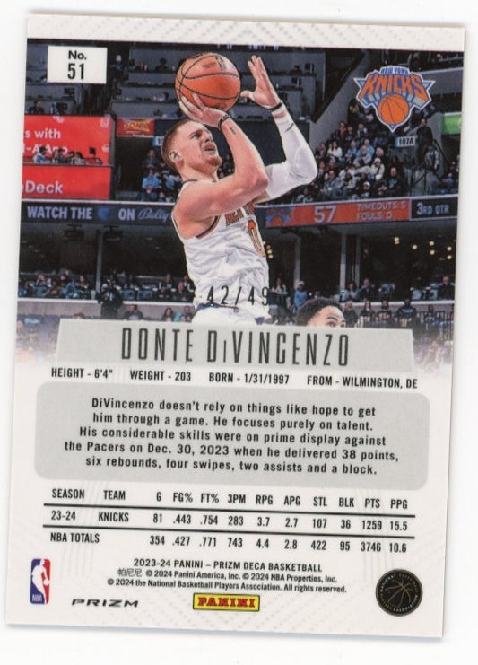 2023/24 Panini Prizm Deca Donte DiVincenzo #51 - Orange #/49 Knicks