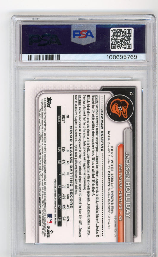 2024 Bowman Chrome Jackson Holiday RC #26 - PSA 8 #/100 Wave Refractor Orioles