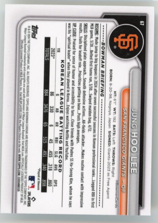 2024 Bowman Chrome Jung Hoo Lee Rookie RC #67 - Holo Giants