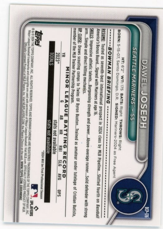 2024 Bowman Chrome Dawel Joseph 1st #BCP-176 - Green #/99 Mariners