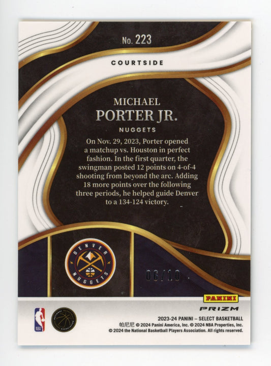 2023/24 Panini Select Courtside Michael Porter Jr. #223 - #/10 Gold Cracked Ice Nuggets