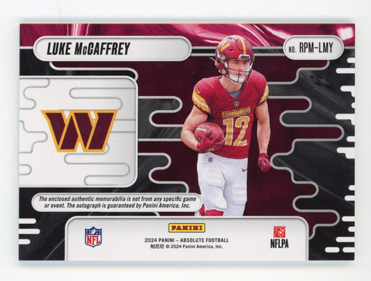 2024 Panini Absolute Luke McCaffrey RC #RPM-LMY - Relic Autograph #/399 Commanders
