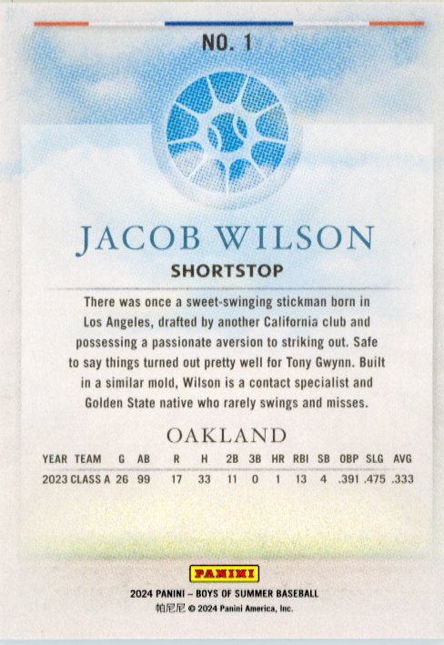 2024 Panini Boys of Summer Jacob Wilson #1 - #/149 Red Athletics