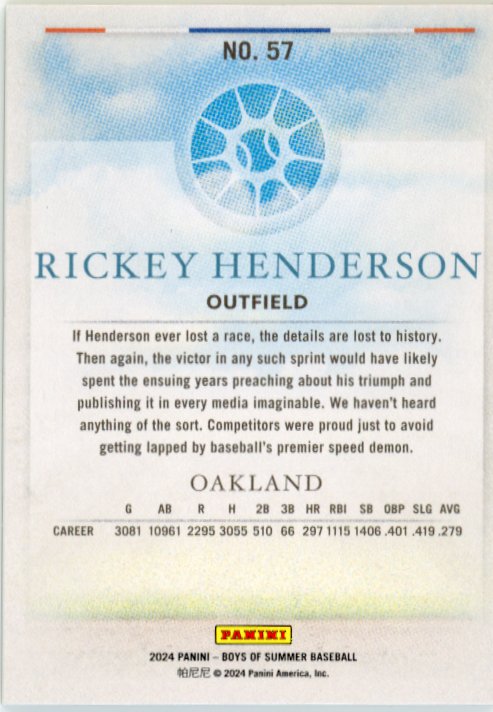 2024 Panini Boys of Summer Rickey Henderson #57 - #/149 Red Athletics