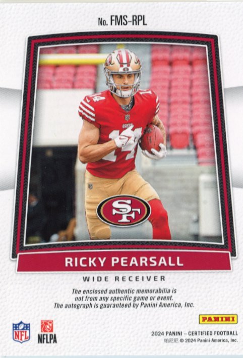 2024 Panini Certified Ricky Pearsall RC#FMS-RPL - #/249 Orange Patch Auto 49ers