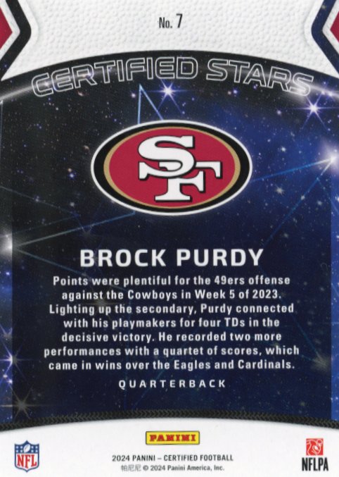2024 Panini Certified Brock Purdy #7 - #/149 Orange 49ers