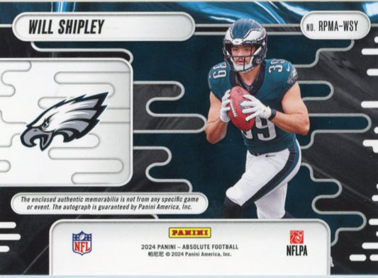 2024 Panini Absolute Will Shipley Rookie Premier RC #RPMA-WSY - Quad Relic Autograph #/299 Eagles