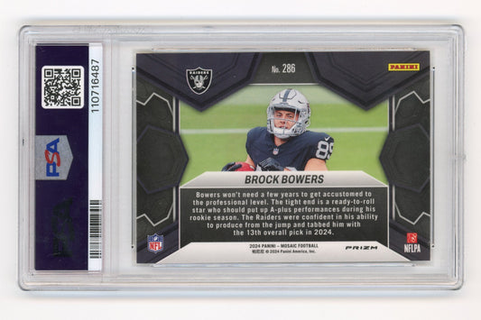 2024 Panini Mosaic Brock Bowers NFL Debut RC #286 - Reactive Yellow PSA 9 Raiders