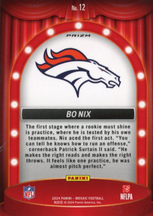 2024 Panini Mosaic Bo Nix Rookie RC #12 - Center Stage Broncos