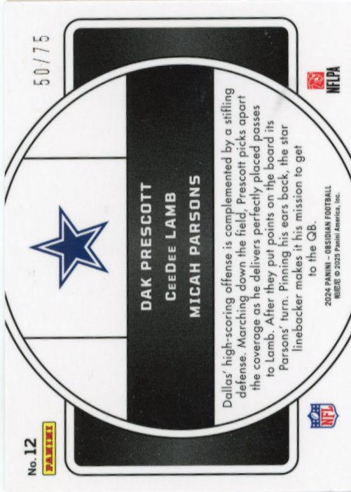 2024 Panini Obsidian Dak Prescott CeeDee Lamb Micah Parsons #12 - #/75 Cowboys