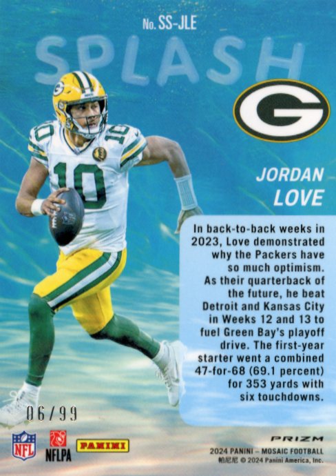 2024 Panini Mosaic Jordan Love Splash #SS-JLE - Packers