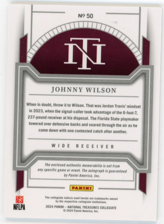 2024 Panini National Treasures Collegiate Johnny Wilson RC #50 - Autograph Relic Blue #/49