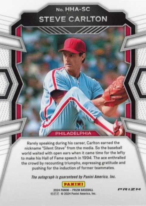 2024 Panini Prizm Steve Carlton Hall Heroes #HHA-SC - Silver Autograph Phillies